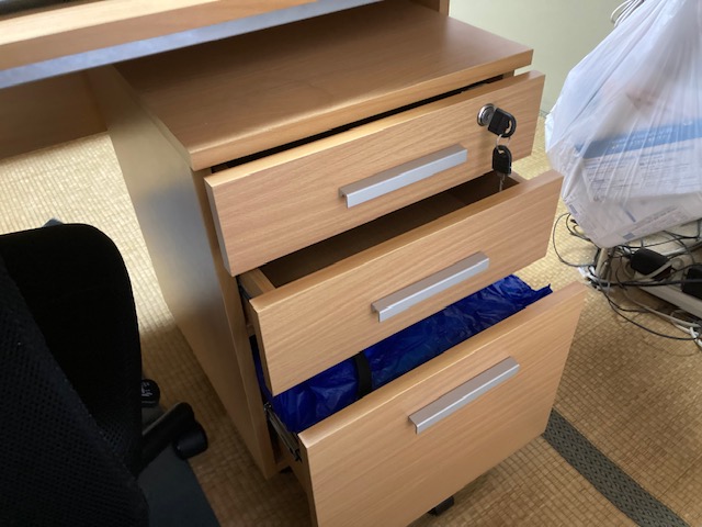 | ・鍵付き書類棚 | レンタルした事務机の鍵付き引き出し。 | ![]() | |